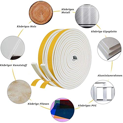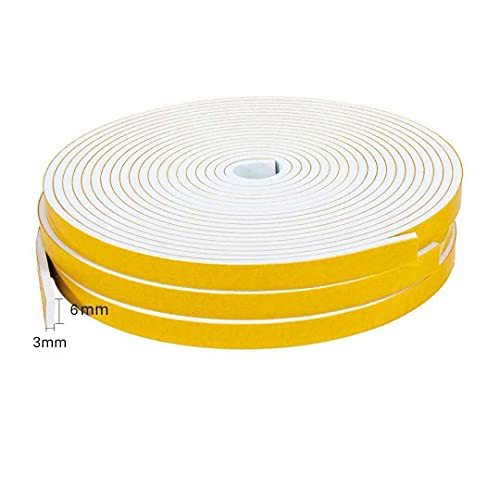 Specification: NAVK Self Adhesive Foam Tape Door Window Seal Door Draught Excluder Weatherstripping, 6mm Wide X 3mm Thick 3 Pcs Each 5M…