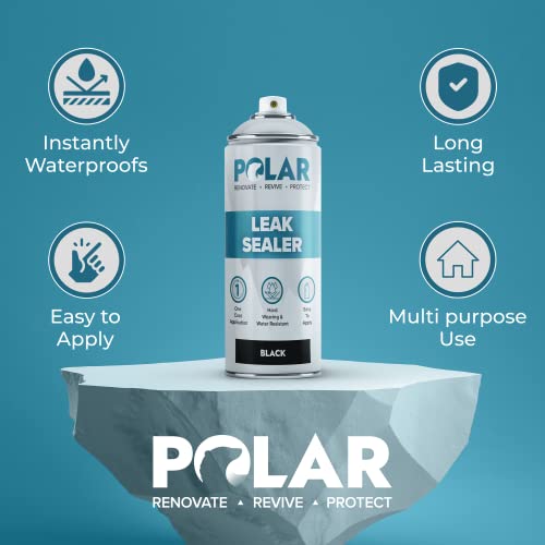 INSTANT WATERPROOF – Polar Leak Sealer spray provides an instant waterproof seal with excellent resistance to weathering and a high covering power. Plastic and external drain pipe sealant. Effective against window and external water pipe leaks & cracks. Our Leak Sealer comes in a variety of colours; Clear, White or Black.