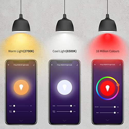 Fitop WiFi Smart Bulbs Alexa Light Bulb B22 Bayonet, Dimmable White and Colour Changing Light Bulb, 9W 806LM=80W RGBCW…