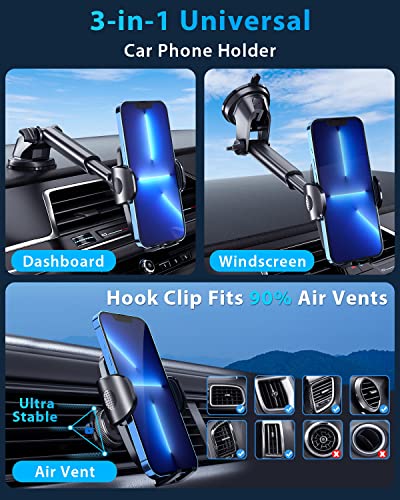 【Universal Compatibility】This universal car phone holder with adjustable feet can extend from 0″ to 0.62″, which can securely hold all smartphones (4-7 inches) even with thicker cases (≤ 0.6″). Compatible with iPhone 13 12 11 Pro Max XR XS X 8 7 SE mini, Samsung Galaxy S22 Ultra/ S21/ S20/ S10/A21/A12 Note 20, Google Pixel, Xiaomi, Redmi, Motorola, OnePlus, OPPO, Huawei, etc.