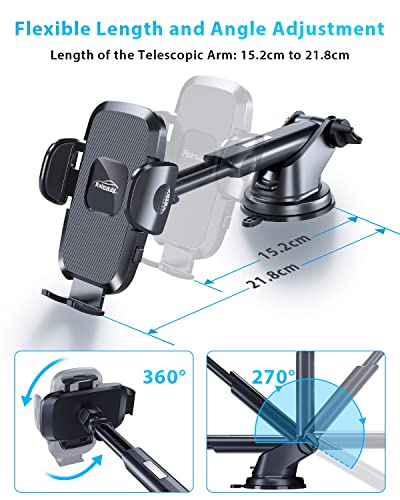 【One-Handed Operation & Best Viewing Angle】This car phone holder adopts a 360° flexible rotation design, which can easily switch between horizontal and vertical viewing angles with one hand. The adjustable telescopic arm can be rotated 270°, extending from 6.0 inches to 8.6 inches, truly realizing free adjustment of various angles, allowing you to enjoy an comfortable and safer driving experience.