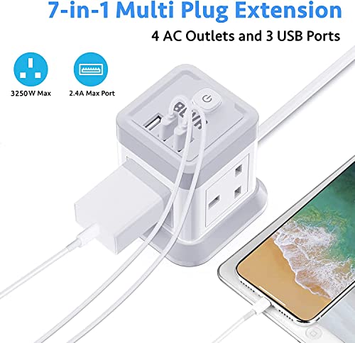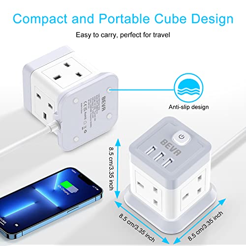Specification: 3M Extension Lead Cube With USB, BEVA 4 Gang Extension Socket With 3 USB Ports, 13A / 3250W Power Strip With Switch…