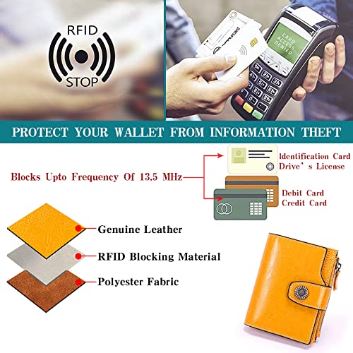 SENDEFN Small Women Wallet Genuine Leather RFID Blocking Bifold Small Purse