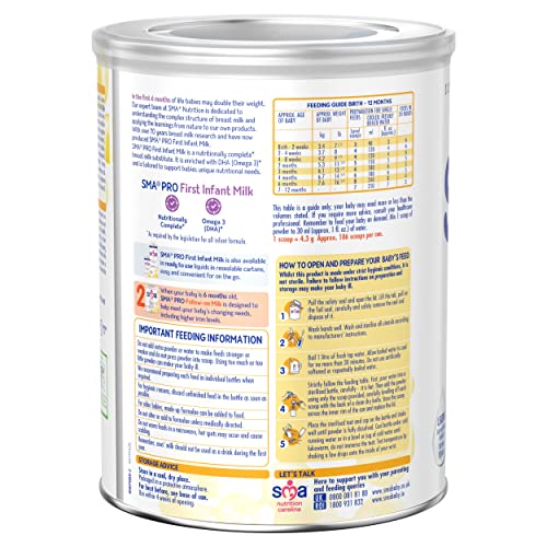 Specification: SMA PRO First Infant Baby Milk Powered Formula, From Birth, 800g (Pack of 1)