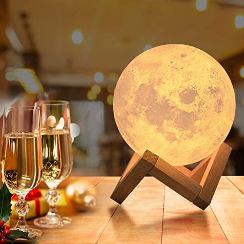 CUQOO 3D Moon Lamp Night Light with Elegant Wooden Stand – Realistic White Moon Light with Touch Control & USB Charging…