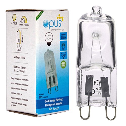 Specification: 10 Pack Opus 2 pin G9 Capsule 28 watt = 40 watt Halogen Light Bulbs