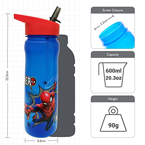 OFFICIAL MARVEL SPIDER-MAN BOTTLE: Our cool Marvel superhero bottle design features our favourite web slinger, Spider-man, who will keep your little one reaching for their water! The 100% BPA free non-toxic water bottle has an easy-to-use flip-up straw to help children stay hydrated throughout the day. Great for everyday use like for school, sports, after school clubs, days out and holidays. A matching lunch bag, tableware and cutlery are available as part of our official UK Marvel merchandise.