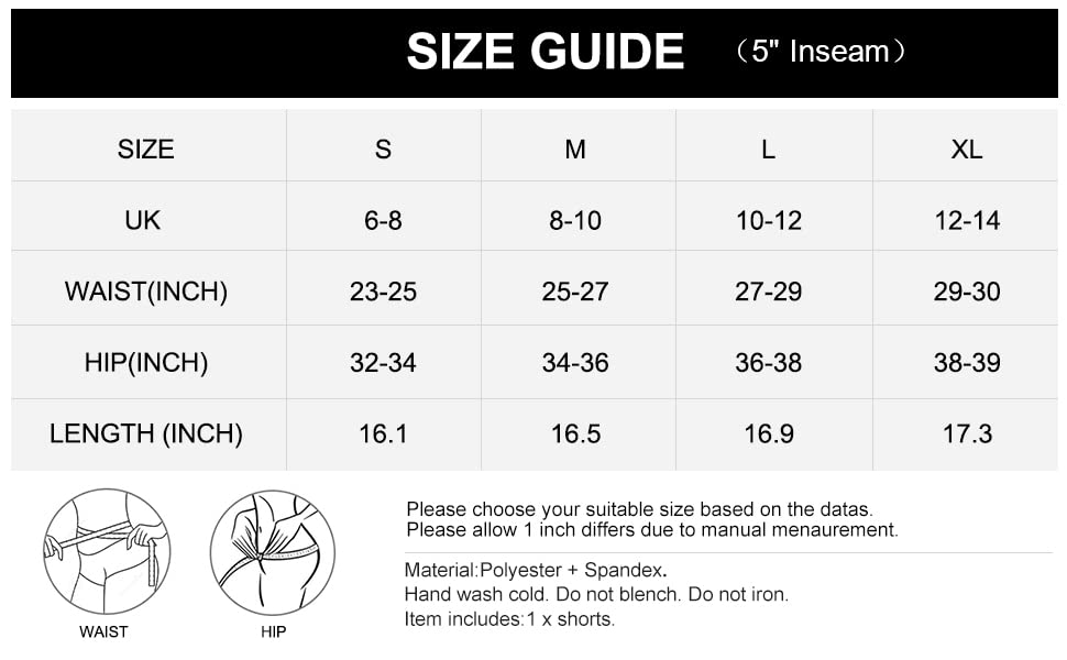 Size: (Our Size Chart) 5″ Inseam, S=UK 6-8, M=UK 8-10, L=UK 10-12, XL=UK 12-14.